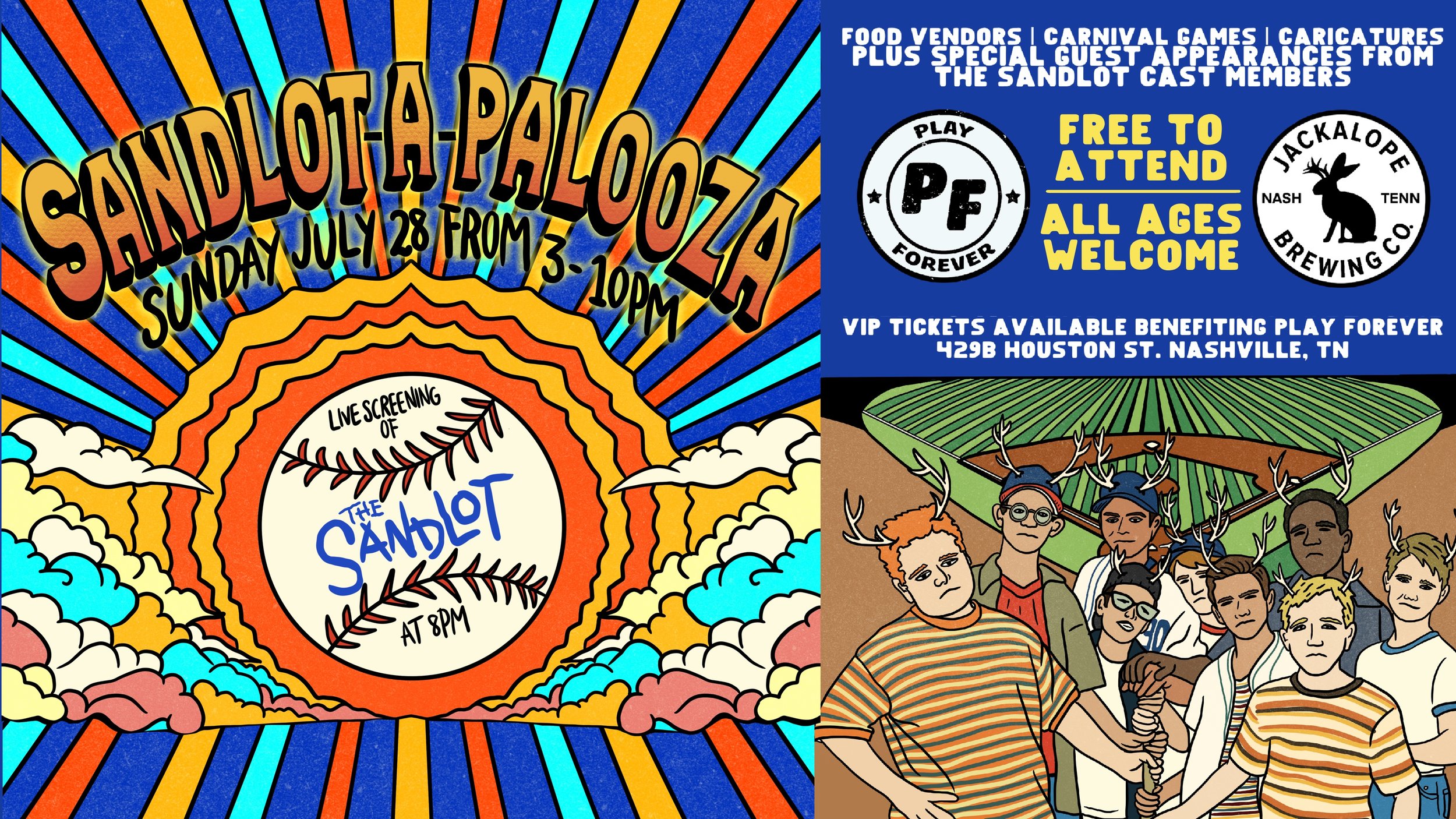 Join us at the Ranch Taproom on Sunday, July 28th for the first-ever SANDLOT-A-PALOOZA benefiting Play Forever. Join us for a family-friendly event with carnival games, food, caricatures, raffles, and appearances from members of the Sandlot cast, followed by a free screening of everyone’s favorite summer movie, The Sandlot.
